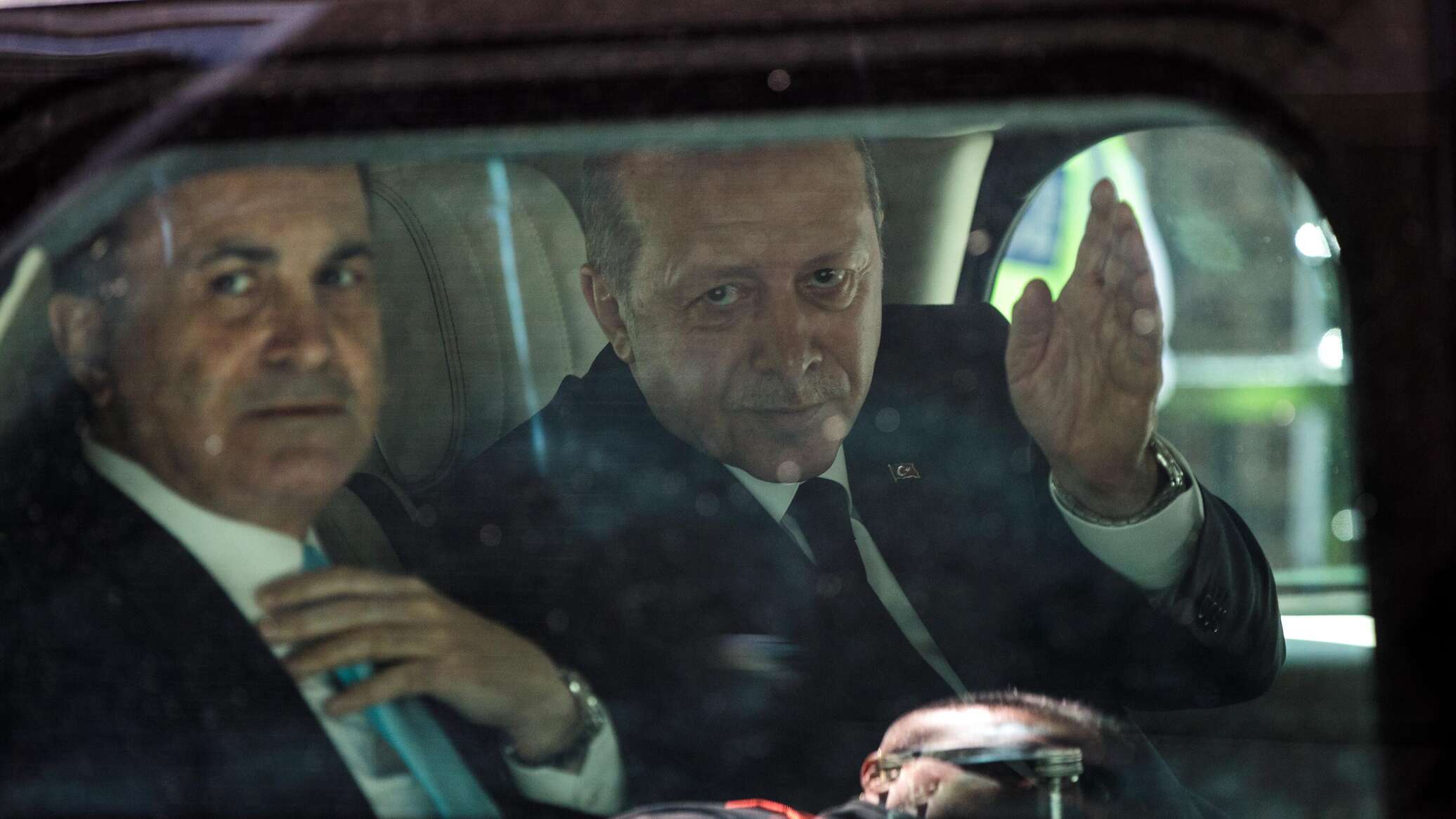 Сообщается, что простоявшие некоторое время в пробке машины Эрдогана вскоре продолжили путь благодаря регулированию движения правоохранителями.