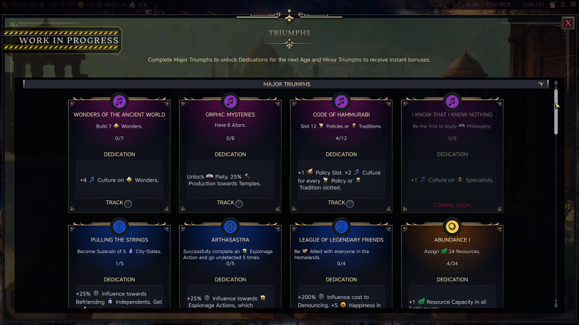 Наградой за Триумф станет мгновенный бонус для империи геймера или особая карта, которую можно разыграть в начале новой эпохи, чтобы задать стратегическое направление на следующий отрезок игры.